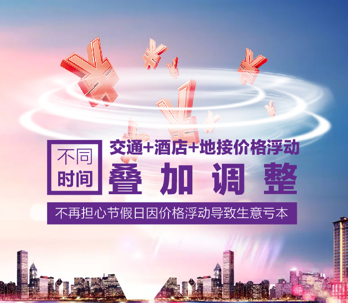 價格更新軟件再添雙翼,浮動價格多個時間段可以疊加調整,滿足不同時間段,交通,酒店,地接價格的不同浮動需求,不再擔心節假日因價格浮動導致生意虧本了,特別的功能給特別的您!。